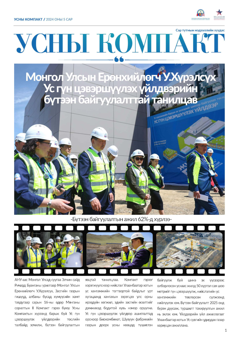 Монгол Улсын Засгийн газар, АНУ-ын Мянганы сорилтын корпорац хооронд байгуулсан II Компакт гэрээ буюу Усны Компактын гурван үндсэн төслийн нэг Хаягдал ус дахин боловсруулах төслийн хүрээнд шинэ Төв цэвэрлэх байгууламжийн дэргэд бүтээн байгуулсан Монголын анхны томоохон Хаягдал ус дахин боловсруулах үйлдвэрийг нээж, үйл ажиллагааг нь эхлүүлэх ёслолын арга хэмжээ 2026 оны 3 дугаар сарын 16-ны өдөр боллоо.